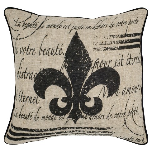 18 X18 Vintage Fleur De Lis Cotton And Jute Throw Pillow Beige Black Rizzy Home Target